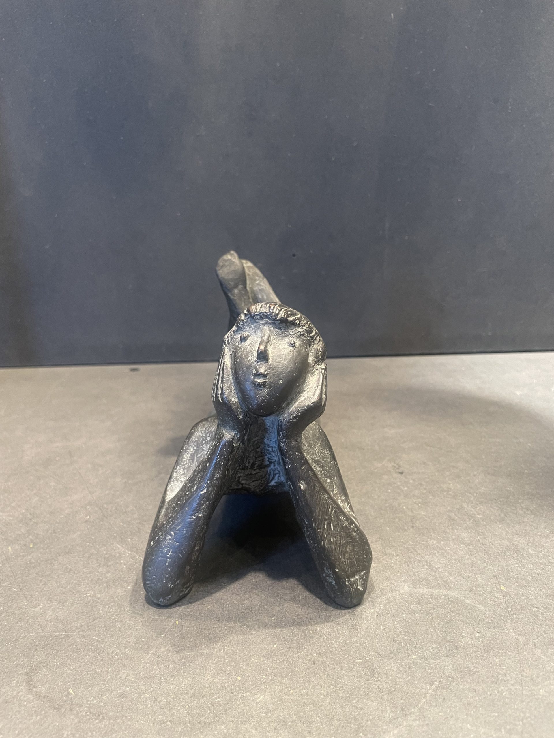 LIEGENDER KNABE, DIE BEINE UND ARME ANGEWINKELT IN DIE LUFT BLICKEND